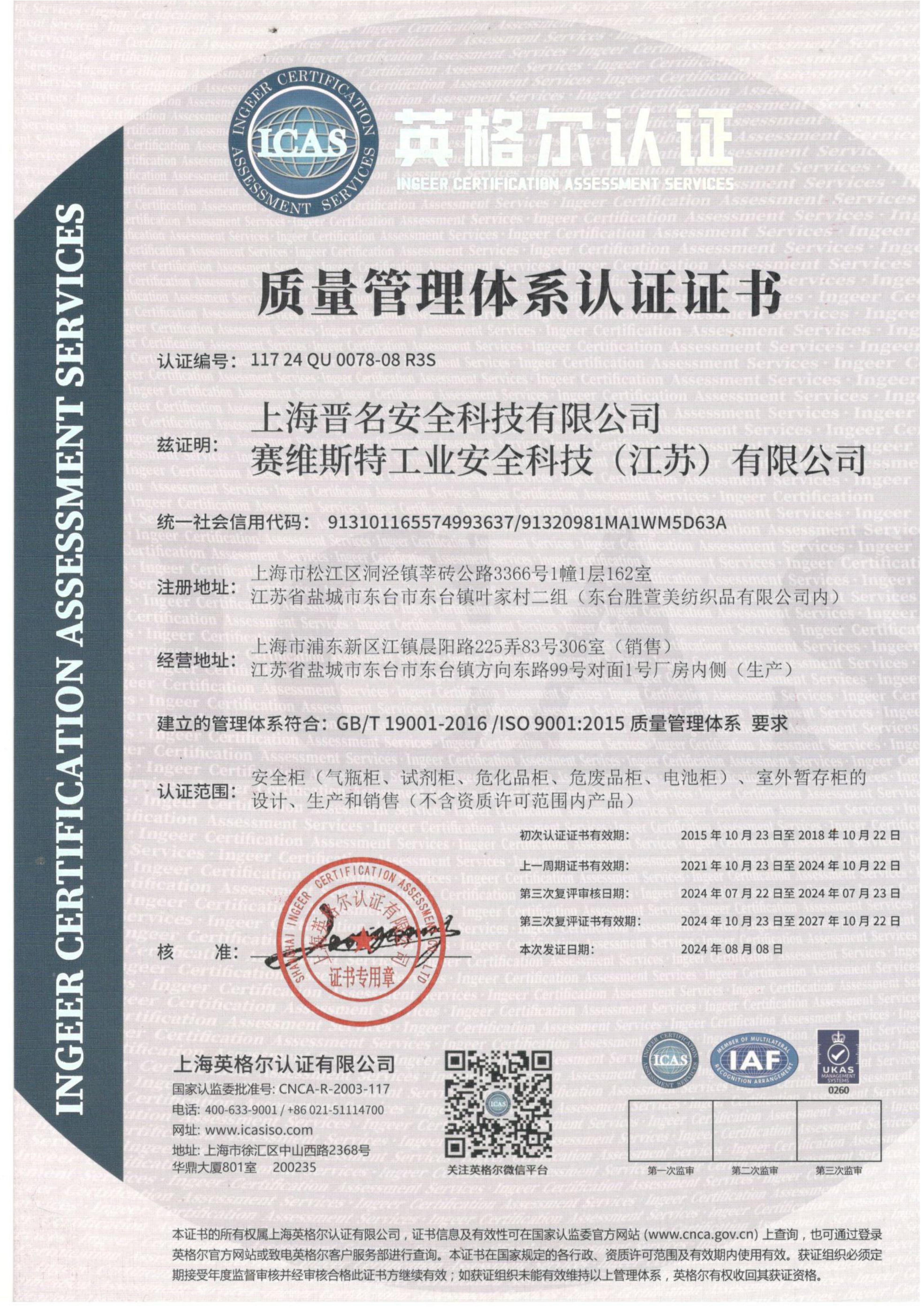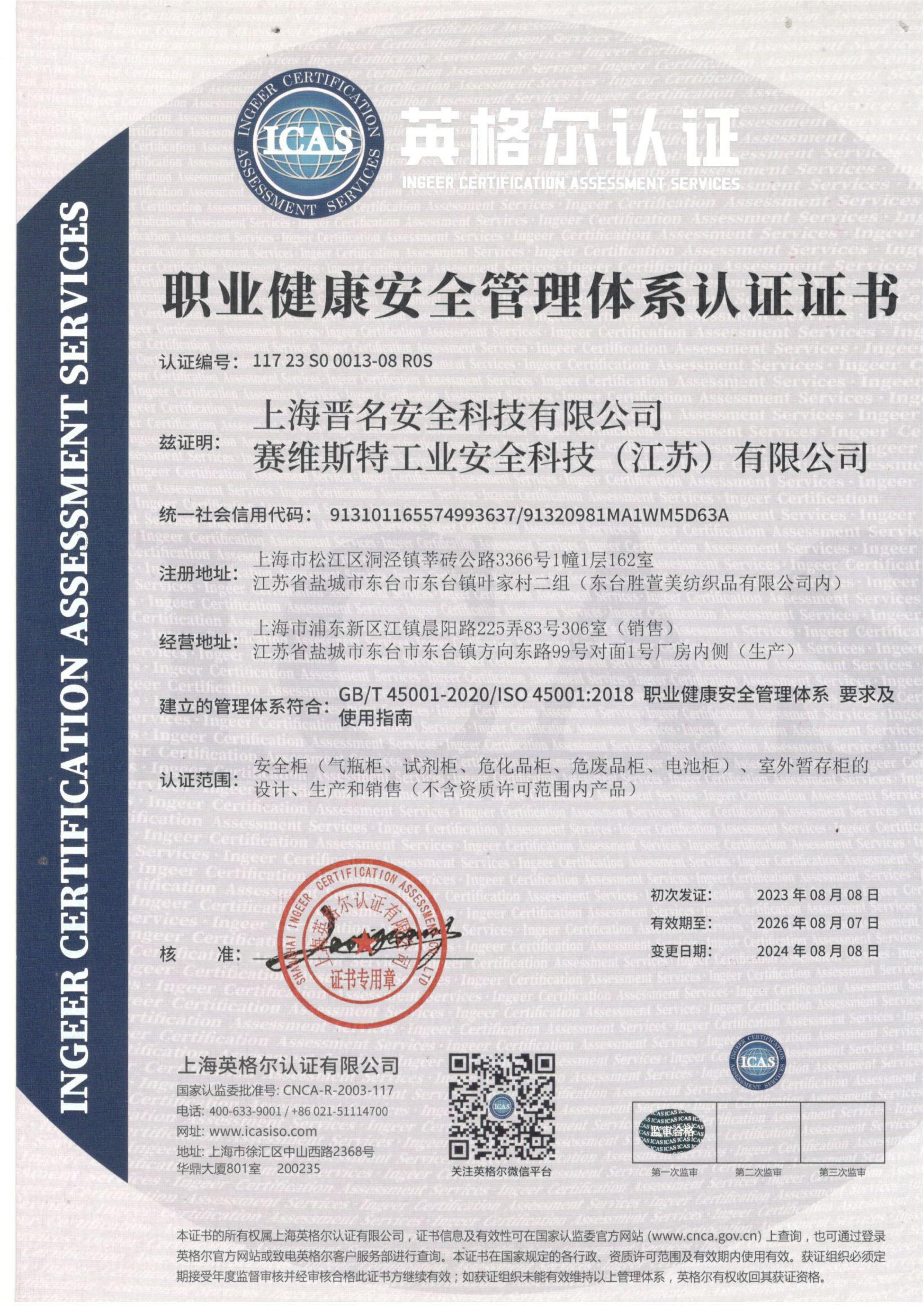 本产品通过欧盟CE认证、EN标准、OSHA标准、ISO质量管理体系认证、防爆测试报告、耐火检测报告、职业健康安全管理体系认证、环境管理体系认证及中国教育装备行业协会会员单位。